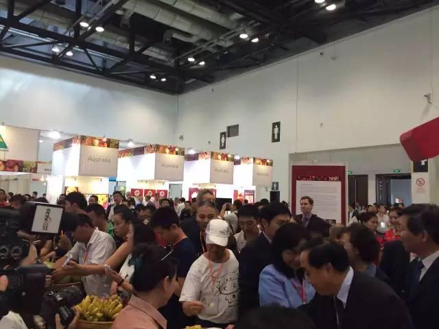 “澳洲的氣候好,芒果特別甜”,一身襯衫西服的羅伯特·格雷,來(lái)自澳大利亞芒果工業(yè)協(xié)會(huì)。站在近200平米的展區(qū)內(nèi),他和同事忙著給參觀者發(fā)放著資料,在他身后,櫻桃、蘋(píng)果、葡萄酒等玲瑯滿(mǎn)目。